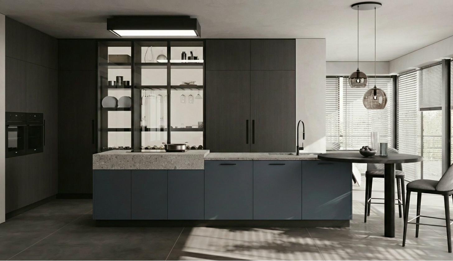 Statement cabinetry with glass-fronted display, integrated LED lighting, and contrasting material combinations. Feature systems are designed as focal points — the piece that defines the room.