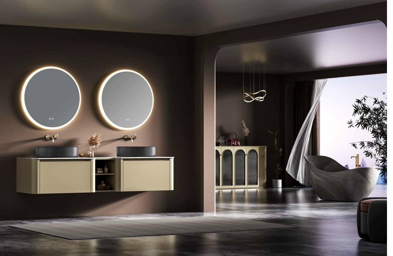 Symmetrical configurations designed for shared spaces. Dual basins with coordinated mirrors create architectural balance while maintaining individual utility.